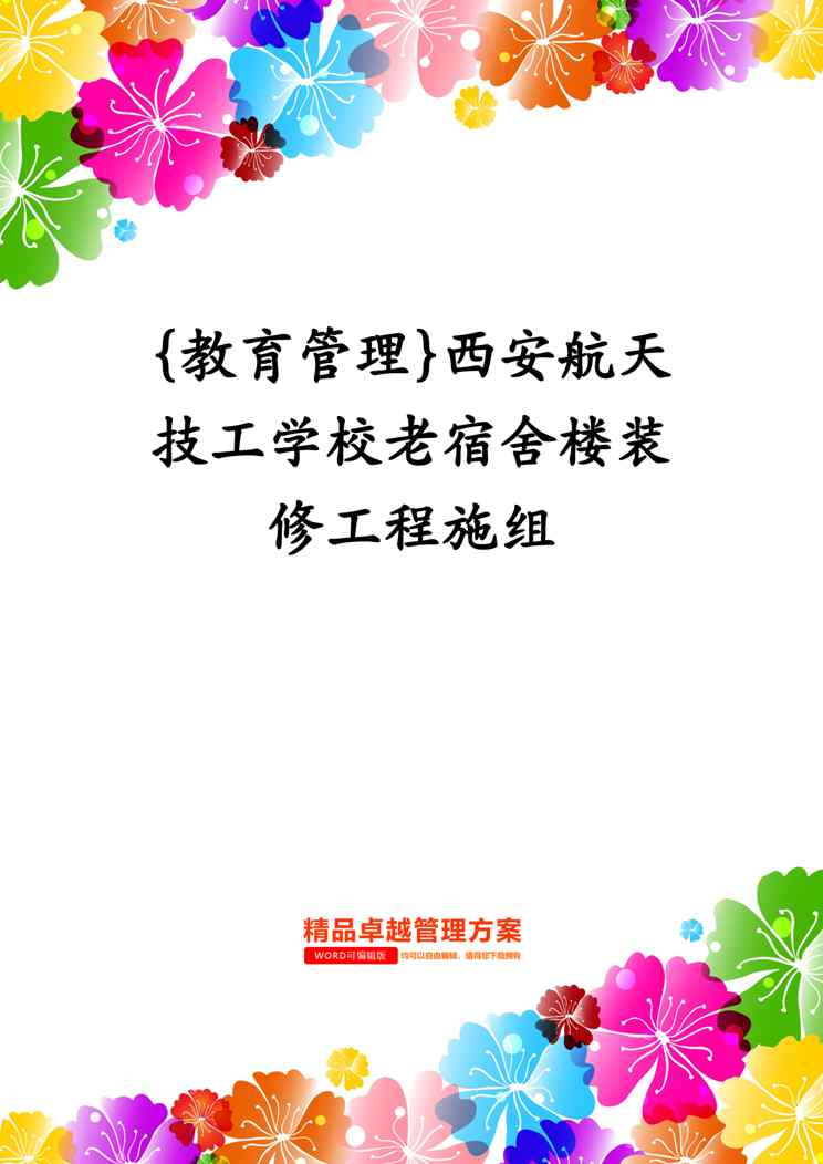 本站正式发布了《{教育管理}西安航天技工学校老宿舍楼装修工程施组》文档,文档详细内容可下载阅读。 声明:本站所有文章,如无特殊说明或标注,均为本站原创发布。任何个人或组织,在未征得本站同意时,禁止复制、盗用、采集、发布本站内容到任何网站、书籍等各类媒体平台。如若本站内容侵犯了原著者的合法权益,可联系我们进行处理。