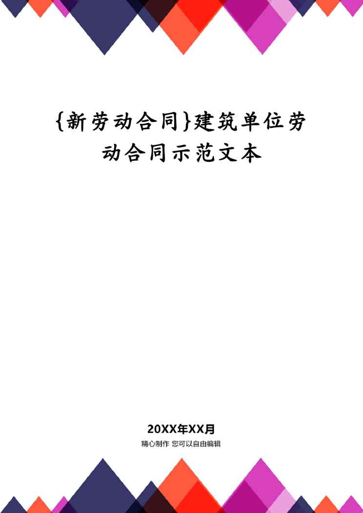 不久前,最新文档《{新劳动合同}建筑单位劳动合同示范文本》全文正式在本站发布,感兴趣的用户可以下载阅读。 声明:本站所有文章,如无特殊说明或标注,均为本站原创发布。任何个人或组织,在未征得本站同意时,禁止复制、盗用、采集、发布本站内容到任何网站、书籍等各类媒体平台。如若本站内容侵犯了原著者的合法权益,可联系我们进行处理。