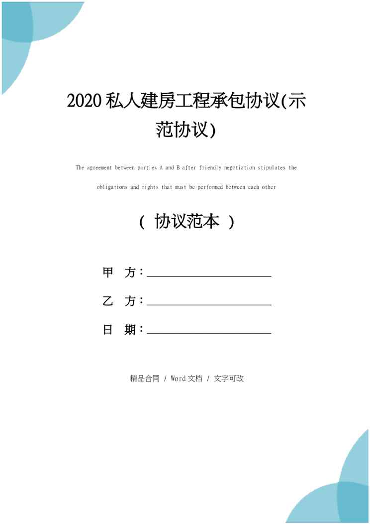 2020私人建房工程承包协议(示范协议)2020私人建房工程承包协议(示范协议)2020私人建房工程承包协议(示范协议)2020私人建房工程承包协议(示范协议)