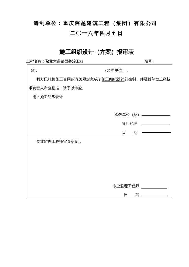 不久前,最新文档《{企业组织设计}道路施工组织设计聚龙》全文正式在本站发布,感兴趣的用户可以下载阅读。 声明:本站所有文章,如无特殊说明或标注,均为本站原创发布。任何个人或组织,在未征得本站同意时,禁止复制、盗用、采集、发布本站内容到任何网站、书籍等各类媒体平台。如若本站内容侵犯了原著者的合法权益,可联系我们进行处理。