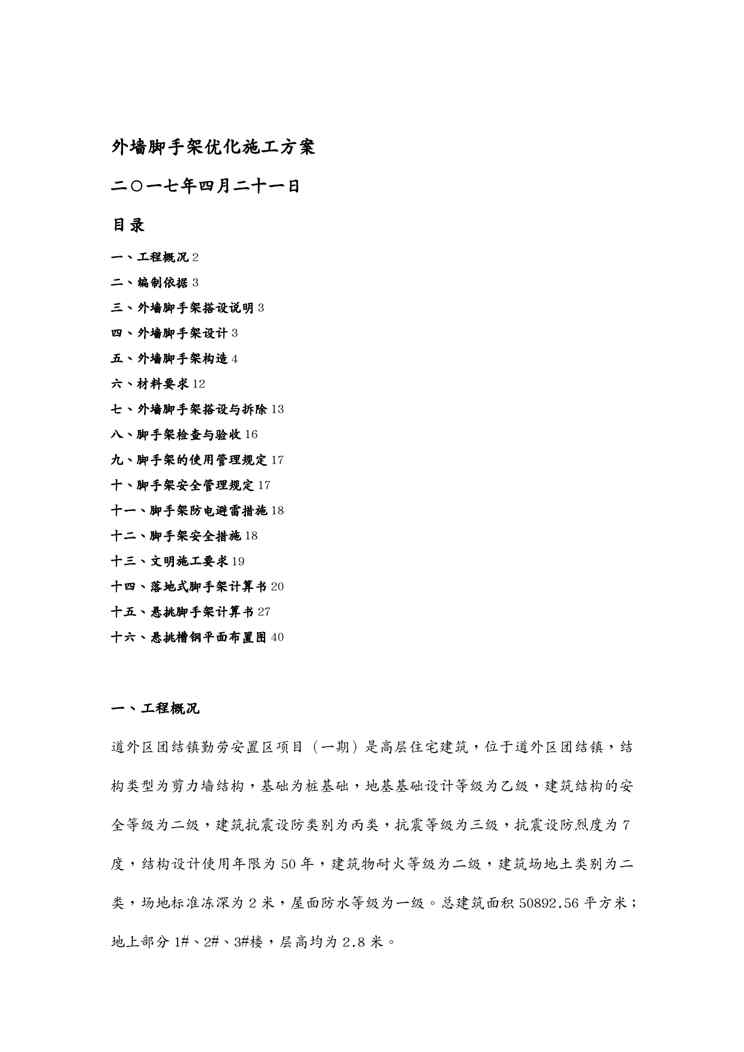 本站资深用户发布了最新的《{企业通用培训}外墙脚手架优化施工方案讲义》文档,以下内容为预览,详细内容可下载阅读。 声明:本站所有文章,如无特殊说明或标注,均为本站原创发布。任何个人或组织,在未征得本站同意时,禁止复制、盗用、采集、发布本站内容到任何网站、书籍等各类媒体平台。如若本站内容侵犯了原著者的合法权益,可联系我们进行处理。