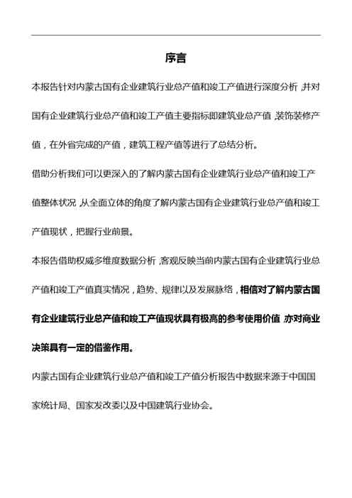 不久前,最新文档《2018版内蒙古国有企业建筑行业总产值和竣工产值分析报告》全文正式在本站发布,感兴趣的用户可以下载阅读。 声明:本站所有文章,如无特殊说明或标注,均为本站原创发布。任何个人或组织,在未征得本站同意时,禁止复制、盗用、采集、发布本站内容到任何网站、书籍等各类媒体平台。如若本站内容侵犯了原著者的合法权益,可联系我们进行处理。