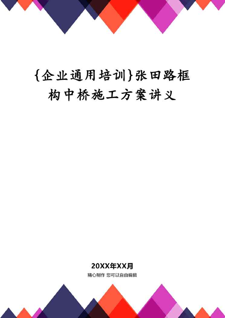 本站正式发布了《{企业通用培训}张田路框构中桥施工方案讲义》文档,文档详细内容可下载阅读。 声明:本站所有文章,如无特殊说明或标注,均为本站原创发布。任何个人或组织,在未征得本站同意时,禁止复制、盗用、采集、发布本站内容到任何网站、书籍等各类媒体平台。如若本站内容侵犯了原著者的合法权益,可联系我们进行处理。