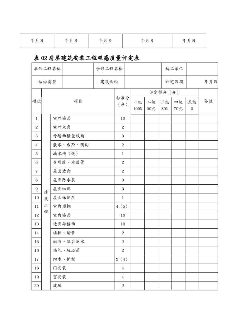 不久前,最新文档《{品质管理制度表格}建筑工程质量评定表》全文正式在本站发布,感兴趣的用户可以下载阅读。 声明:本站所有文章,如无特殊说明或标注,均为本站原创发布。任何个人或组织,在未征得本站同意时,禁止复制、盗用、采集、发布本站内容到任何网站、书籍等各类媒体平台。如若本站内容侵犯了原著者的合法权益,可联系我们进行处理。