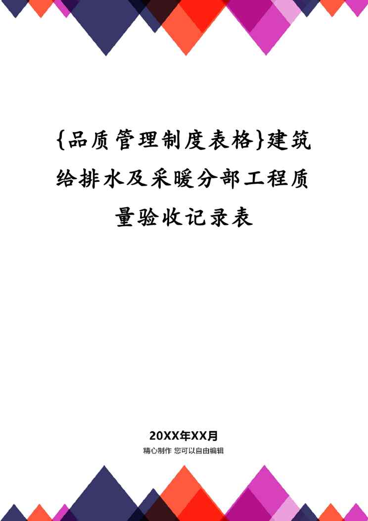 本站资深用户发布了最新的《{品质管理制度表格}建筑给排水及采暖分部工程质量验收记录表》文档,以下内容为预览,详细内容可下载阅读。 声明:本站所有文章,如无特殊说明或标注,均为本站原创发布。任何个人或组织,在未征得本站同意时,禁止复制、盗用、采集、发布本站内容到任何网站、书籍等各类媒体平台。如若本站内容侵犯了原著者的合法权益,可联系我们进行处理。