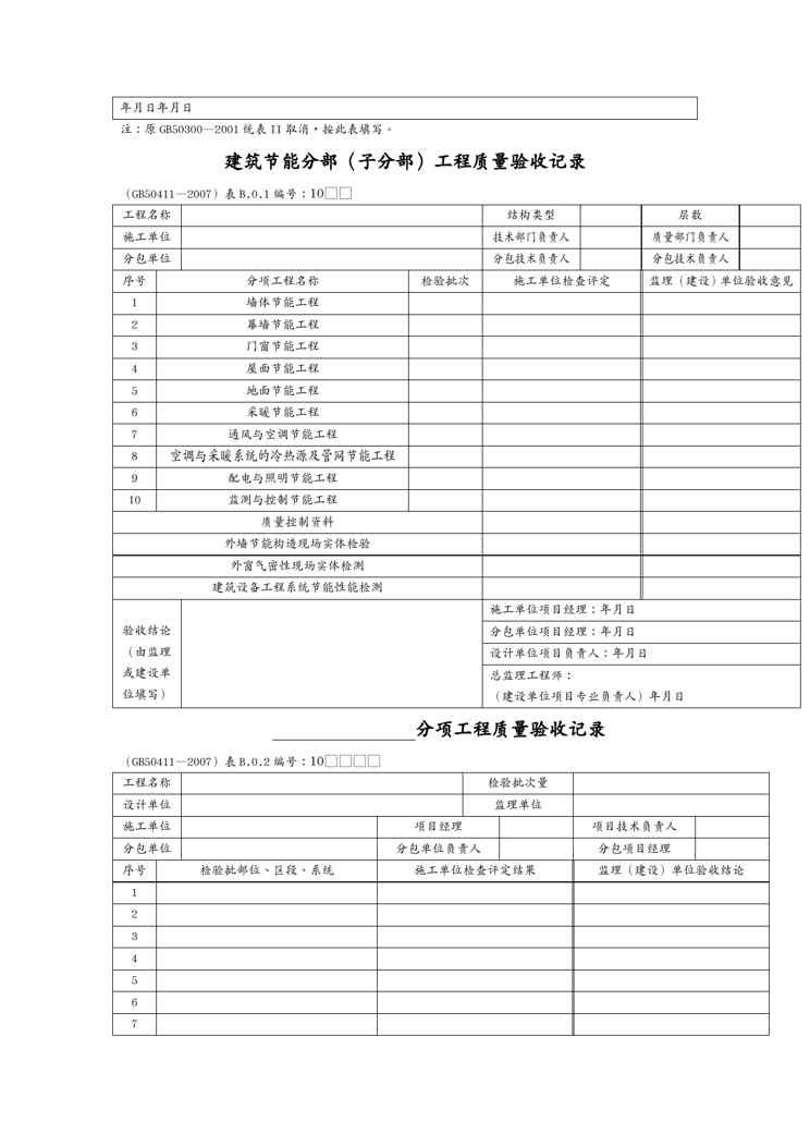 本站资深用户发布了最新的《{品质管理制度表格}建筑能工程施工质量验收规范通用表格》文档,以下内容为预览,详细内容可下载阅读。 声明:本站所有文章,如无特殊说明或标注,均为本站原创发布。任何个人或组织,在未征得本站同意时,禁止复制、盗用、采集、发布本站内容到任何网站、书籍等各类媒体平台。如若本站内容侵犯了原著者的合法权益,可联系我们进行处理。