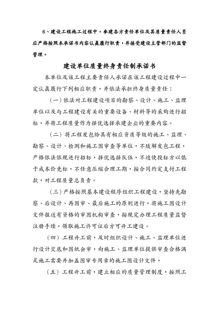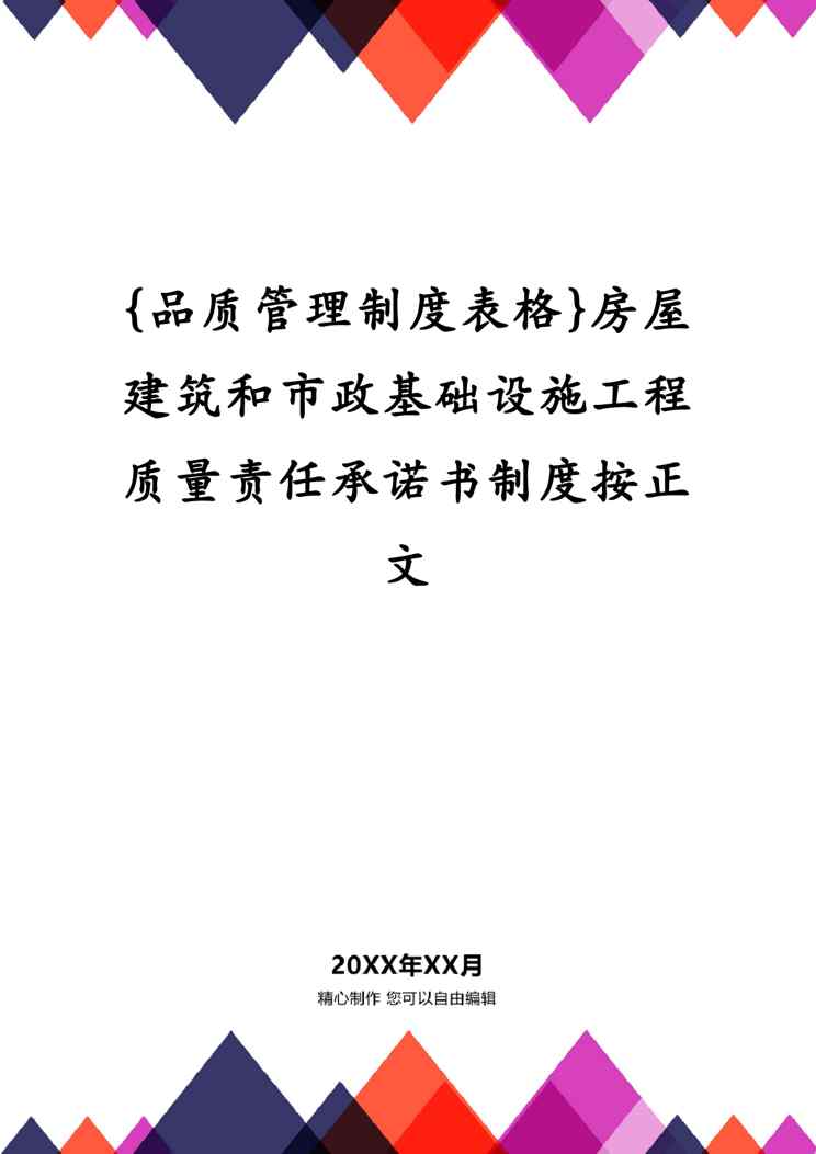 本站正式发布了《{品质管理制度表格}房屋建筑和市政基础设施工程质量责任承诺书制度按正文》文档,文档详细内容可下载阅读。 声明:本站所有文章,如无特殊说明或标注,均为本站原创发布。任何个人或组织,在未征得本站同意时,禁止复制、盗用、采集、发布本站内容到任何网站、书籍等各类媒体平台。如若本站内容侵犯了原著者的合法权益,可联系我们进行处理。