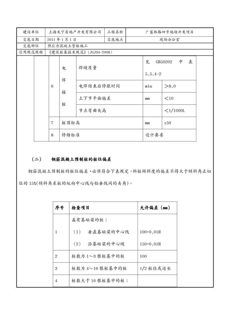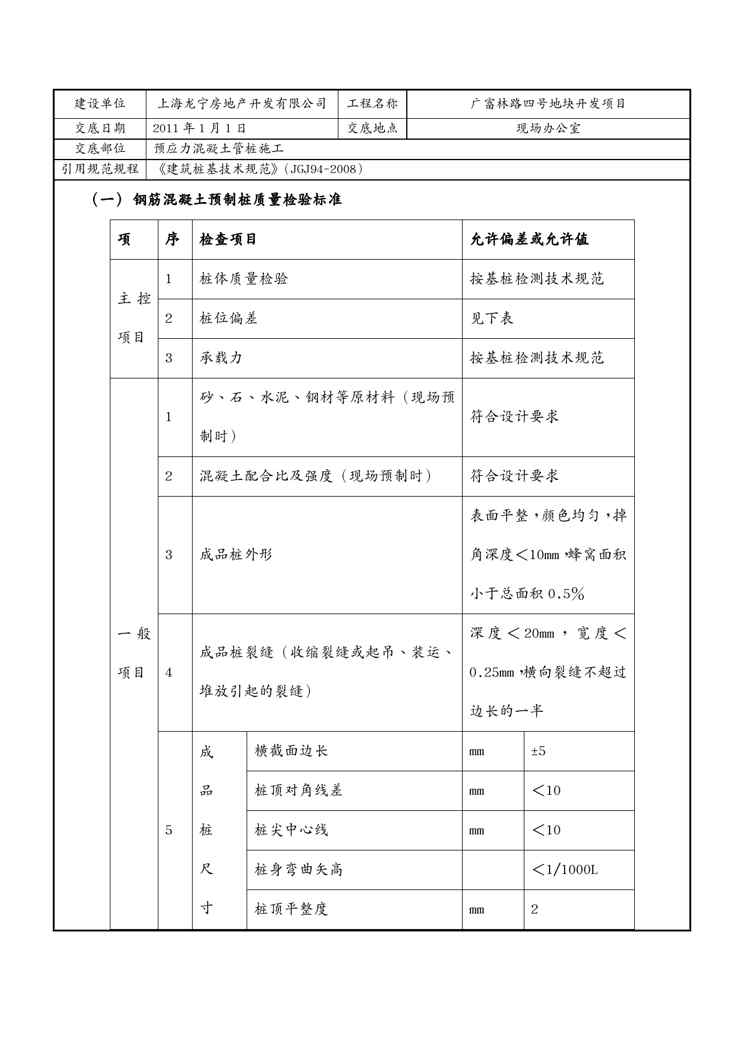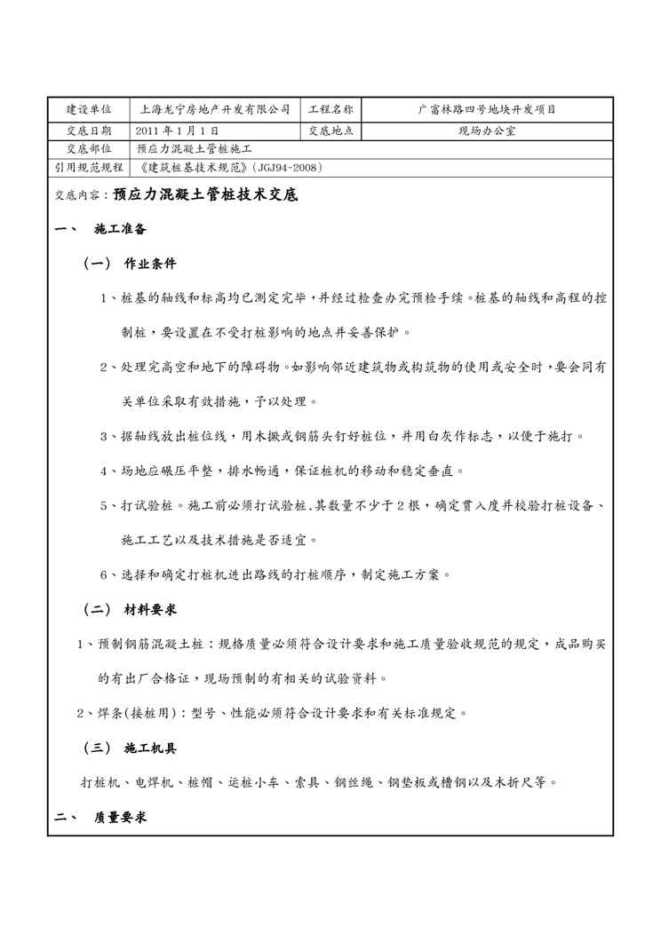 本站正式发布了《{品质管理品质知识}钢筋混凝土预应力H管桩技术质量交底》文档,文档详细内容可下载阅读。 声明:本站所有文章,如无特殊说明或标注,均为本站原创发布。任何个人或组织,在未征得本站同意时,禁止复制、盗用、采集、发布本站内容到任何网站、书籍等各类媒体平台。如若本站内容侵犯了原著者的合法权益,可联系我们进行处理。