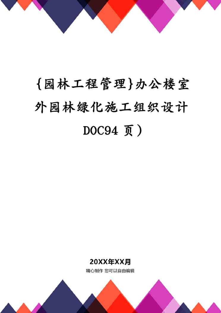 本站正式发布了《{园林工程管理}办公楼室外园林绿化施工组织设计DOC94页)》文档,文档详细内容可下载阅读。 声明:本站所有文章,如无特殊说明或标注,均为本站原创发布。任何个人或组织,在未征得本站同意时,禁止复制、盗用、采集、发布本站内容到任何网站、书籍等各类媒体平台。如若本站内容侵犯了原著者的合法权益,可联系我们进行处理。