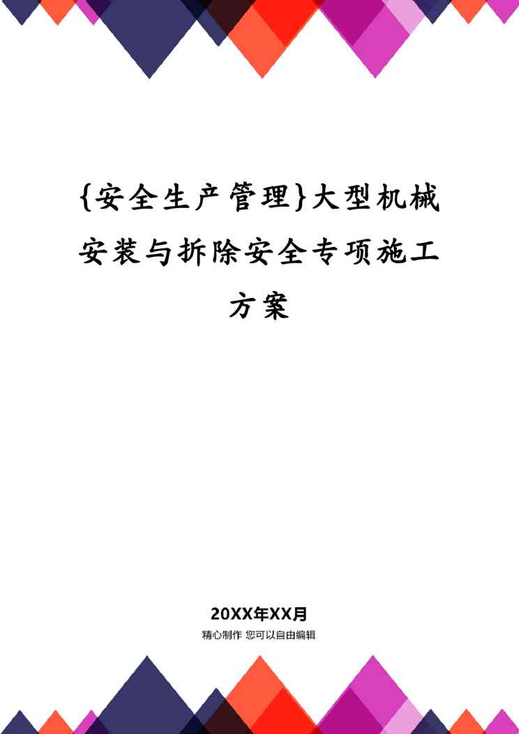 本站资深用户发布了最新的《{安全生产管理}大型机械安装与拆除安全专项施工方案》文档,以下内容为预览,详细内容可下载阅读。 声明:本站所有文章,如无特殊说明或标注,均为本站原创发布。任何个人或组织,在未征得本站同意时,禁止复制、盗用、采集、发布本站内容到任何网站、书籍等各类媒体平台。如若本站内容侵犯了原著者的合法权益,可联系我们进行处理。