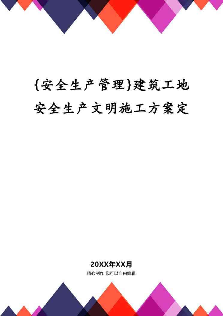 不久前,最新文档《{安全生产管理}建筑工地安全生产文明施工方案定》全文正式在本站发布,感兴趣的用户可以下载阅读。 声明:本站所有文章,如无特殊说明或标注,均为本站原创发布。任何个人或组织,在未征得本站同意时,禁止复制、盗用、采集、发布本站内容到任何网站、书籍等各类媒体平台。如若本站内容侵犯了原著者的合法权益,可联系我们进行处理。