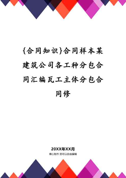 本站正式发布了《{合同知识}合同样本某建筑公司各工种分包合同汇编瓦工主体分包合同修》文档,文档详细内容可下载阅读。 声明:本站所有文章,如无特殊说明或标注,均为本站原创发布。任何个人或组织,在未征得本站同意时,禁止复制、盗用、采集、发布本站内容到任何网站、书籍等各类媒体平台。如若本站内容侵犯了原著者的合法权益,可联系我们进行处理。