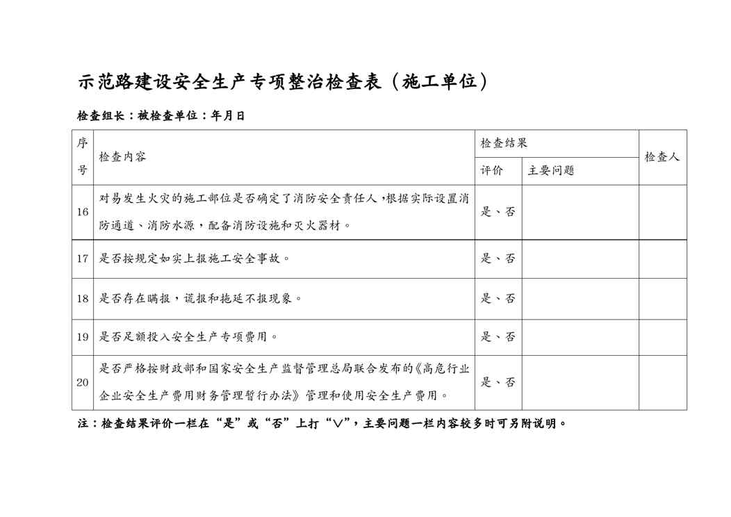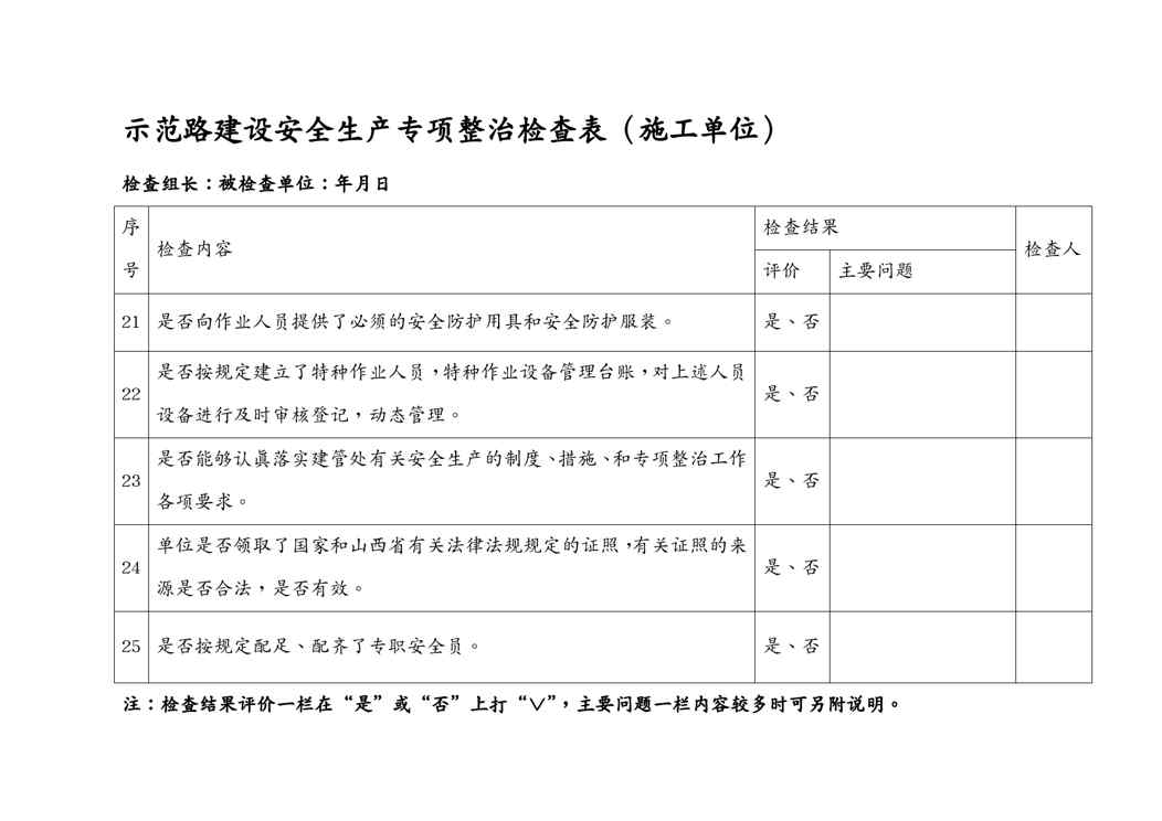 不久前,最新文档《{安全生产管理}忻阜高速公路建设安全生产专项整治检查表》全文正式在本站发布,感兴趣的用户可以下载阅读。 声明:本站所有文章,如无特殊说明或标注,均为本站原创发布。任何个人或组织,在未征得本站同意时,禁止复制、盗用、采集、发布本站内容到任何网站、书籍等各类媒体平台。如若本站内容侵犯了原著者的合法权益,可联系我们进行处理。
