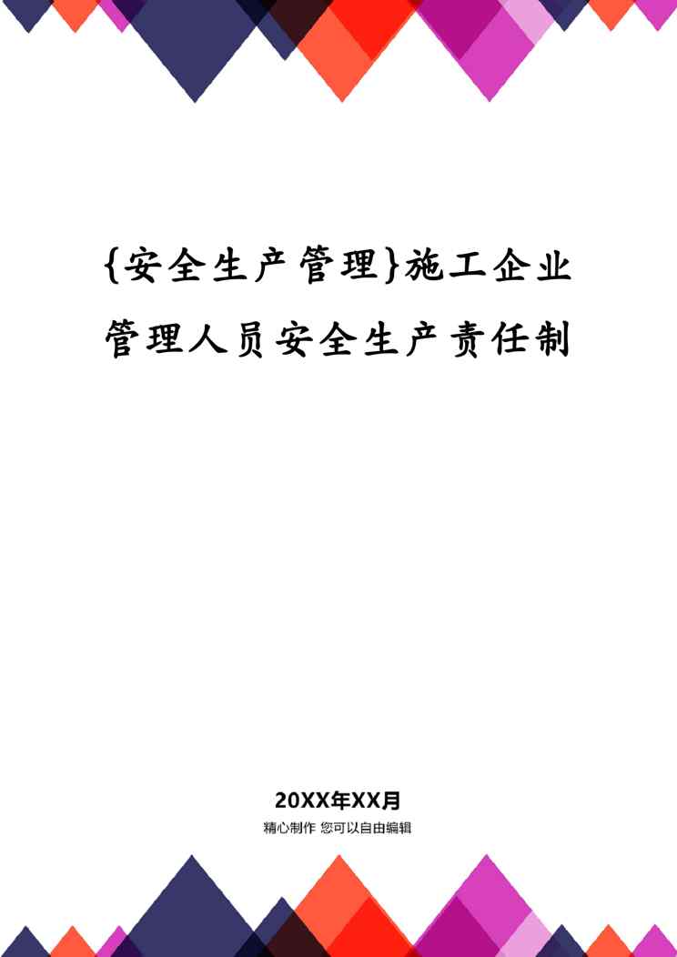 本站正式发布了《{安全生产管理}施工企业管理人员安全生产责任制》文档,文档详细内容可下载阅读。 声明:本站所有文章,如无特殊说明或标注,均为本站原创发布。任何个人或组织,在未征得本站同意时,禁止复制、盗用、采集、发布本站内容到任何网站、书籍等各类媒体平台。如若本站内容侵犯了原著者的合法权益,可联系我们进行处理。