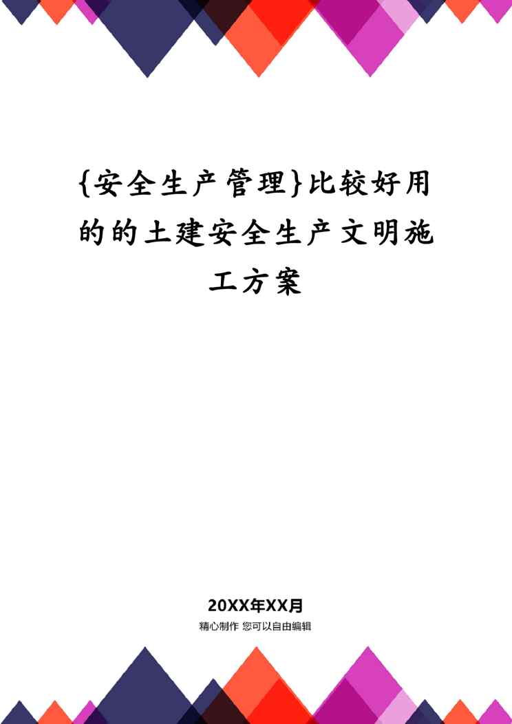 本站正式发布了《{安全生产管理}比较好用的的土建安全生产文明施工方案》文档,文档详细内容可下载阅读。 声明:本站所有文章,如无特殊说明或标注,均为本站原创发布。任何个人或组织,在未征得本站同意时,禁止复制、盗用、采集、发布本站内容到任何网站、书籍等各类媒体平台。如若本站内容侵犯了原著者的合法权益,可联系我们进行处理。