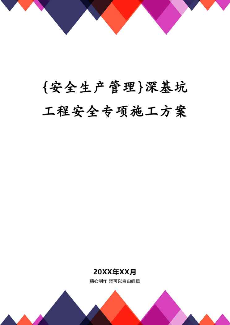 本站资深用户发布了最新的《{安全生产管理}深基坑工程安全专项施工方案》文档,以下内容为预览,详细内容可下载阅读。 声明:本站所有文章,如无特殊说明或标注,均为本站原创发布。任何个人或组织,在未征得本站同意时,禁止复制、盗用、采集、发布本站内容到任何网站、书籍等各类媒体平台。如若本站内容侵犯了原著者的合法权益,可联系我们进行处理。