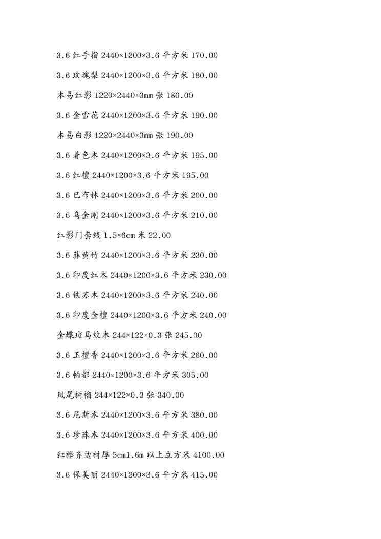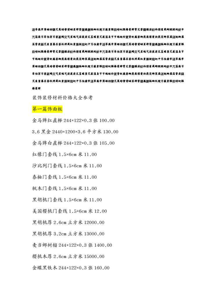本站资深用户发布了最新的《{定价策略}全国装饰装修材料价格大全参考》文档,以下内容为预览,详细内容可下载阅读。 声明:本站所有文章,如无特殊说明或标注,均为本站原创发布。任何个人或组织,在未征得本站同意时,禁止复制、盗用、采集、发布本站内容到任何网站、书籍等各类媒体平台。如若本站内容侵犯了原著者的合法权益,可联系我们进行处理。