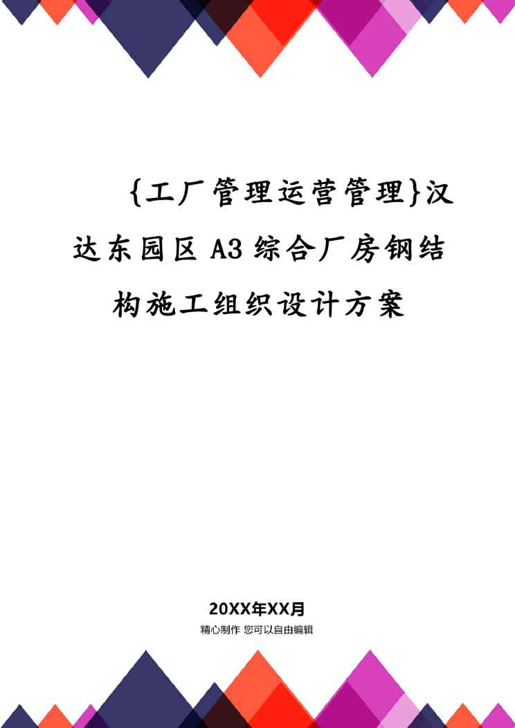 本站正式发布了《{工厂管理运营管理}汉达东园区A3综合厂房钢结构施工组织设计方案》文档,文档详细内容可下载阅读。 声明:本站所有文章,如无特殊说明或标注,均为本站原创发布。任何个人或组织,在未征得本站同意时,禁止复制、盗用、采集、发布本站内容到任何网站、书籍等各类媒体平台。如若本站内容侵犯了原著者的合法权益,可联系我们进行处理。