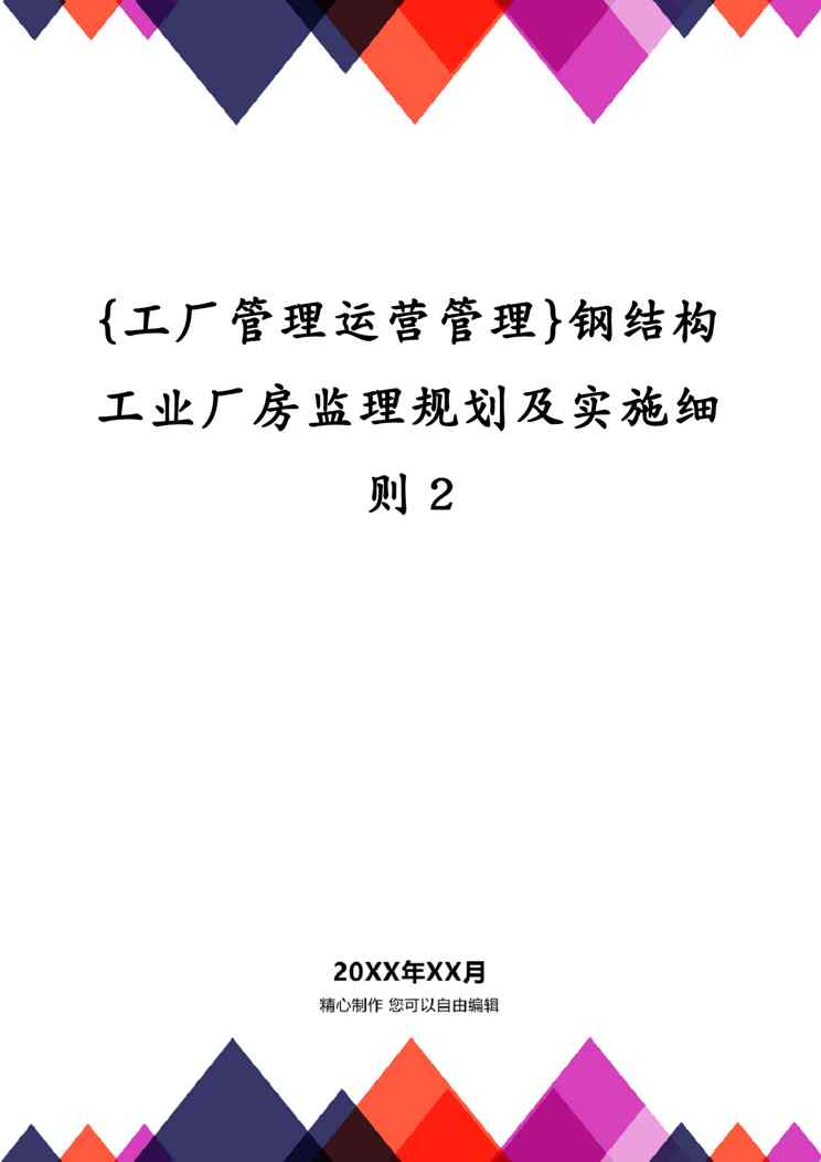 本站正式发布了《{工厂管理运营管理}钢结构工业厂房监理规划及实施细则2》文档,文档详细内容可下载阅读。 声明:本站所有文章,如无特殊说明或标注,均为本站原创发布。任何个人或组织,在未征得本站同意时,禁止复制、盗用、采集、发布本站内容到任何网站、书籍等各类媒体平台。如若本站内容侵犯了原著者的合法权益,可联系我们进行处理。