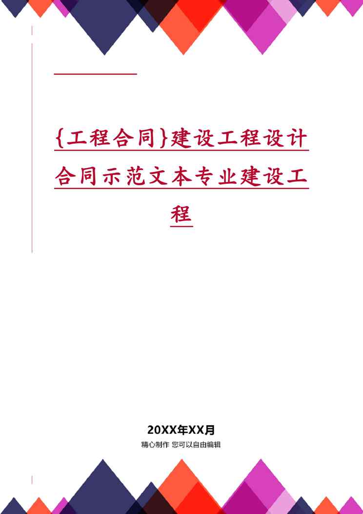 本站资深用户发布了最新的《{工程合同}建设工程设计合同示范文本专业建设工程》文档,以下内容为预览,详细内容可下载阅读。