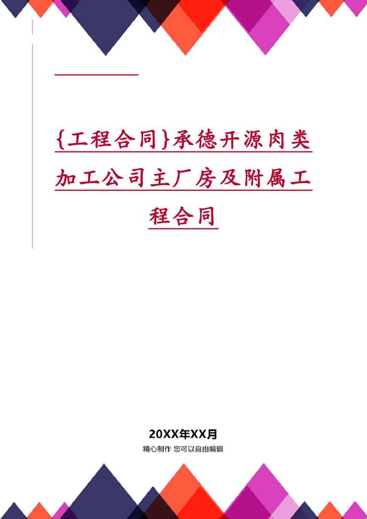 本站资深用户发布了最新的《{工程合同}承德开源肉类加工公司主厂房及附属工程合同》文档,以下内容为预览,详细内容可下载阅读。 声明:本站所有文章,如无特殊说明或标注,均为本站原创发布。任何个人或组织,在未征得本站同意时,禁止复制、盗用、采集、发布本站内容到任何网站、书籍等各类媒体平台。如若本站内容侵犯了原著者的合法权益,可联系我们进行处理。