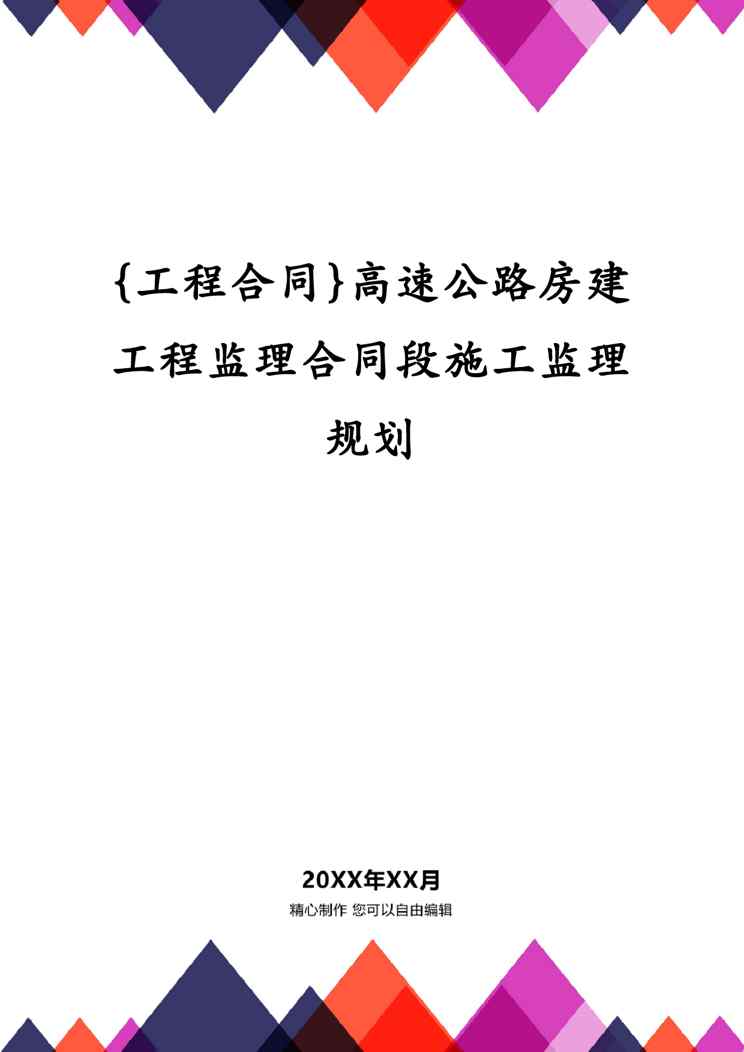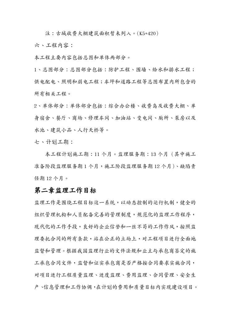 本站正式发布了《{工程合同}高速公路房建工程监理合同段施工监理规划》文档,文档详细内容可下载阅读。 声明:本站所有文章,如无特殊说明或标注,均为本站原创发布。任何个人或组织,在未征得本站同意时,禁止复制、盗用、采集、发布本站内容到任何网站、书籍等各类媒体平台。如若本站内容侵犯了原著者的合法权益,可联系我们进行处理。