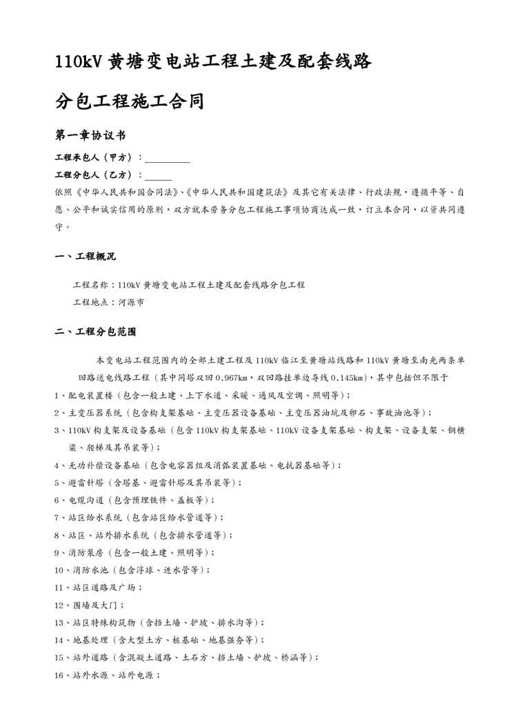 不久前,最新文档《{工程合同}黄塘变电站工程土建及配套线路分包工程施工合同》全文正式在本站发布,感兴趣的用户可以下载阅读。 声明:本站所有文章,如无特殊说明或标注,均为本站原创发布。任何个人或组织,在未征得本站同意时,禁止复制、盗用、采集、发布本站内容到任何网站、书籍等各类媒体平台。如若本站内容侵犯了原著者的合法权益,可联系我们进行处理。