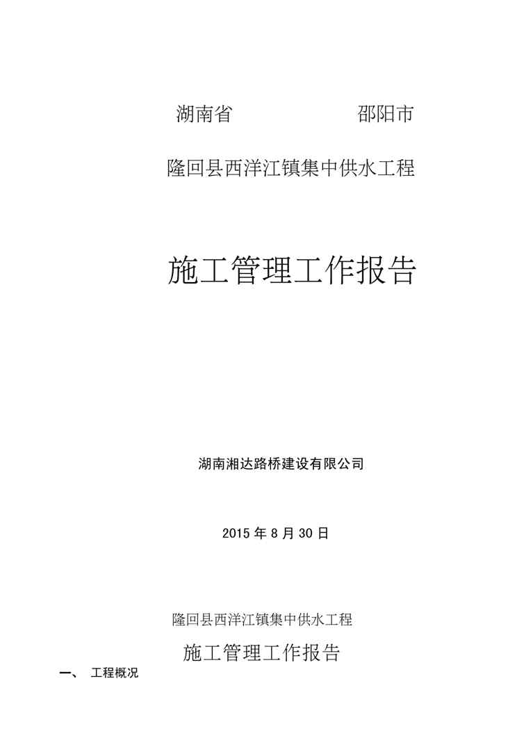 本站正式发布了《{年度报告}供水工程施工管理工作报告终稿》文档,文档详细内容可下载阅读。 声明:本站所有文章,如无特殊说明或标注,均为本站原创发布。任何个人或组织,在未征得本站同意时,禁止复制、盗用、采集、发布本站内容到任何网站、书籍等各类媒体平台。如若本站内容侵犯了原著者的合法权益,可联系我们进行处理。