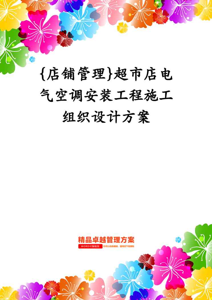 不久前,最新文档《{店铺管理}超市店电气空调安装工程施工组织设计方案》全文正式在本站发布,感兴趣的用户可以下载阅读。 声明:本站所有文章,如无特殊说明或标注,均为本站原创发布。任何个人或组织,在未征得本站同意时,禁止复制、盗用、采集、发布本站内容到任何网站、书籍等各类媒体平台。如若本站内容侵犯了原著者的合法权益,可联系我们进行处理。