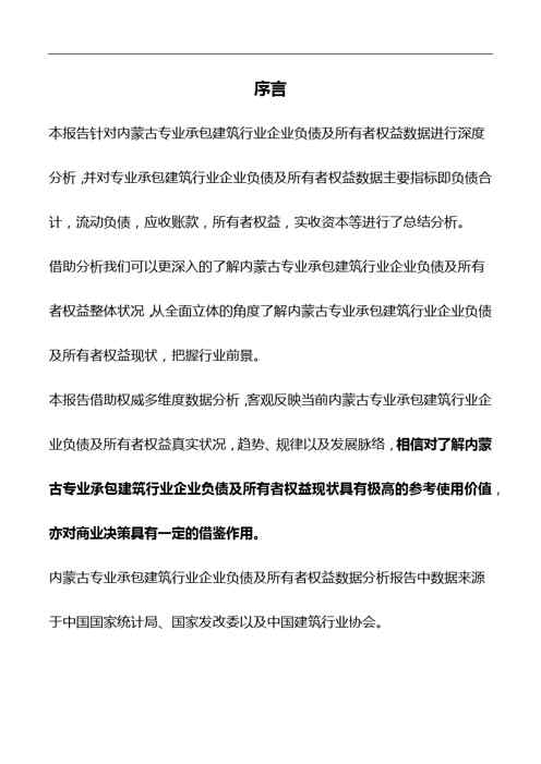 2018版内蒙古专业承包建筑行业企业负债及所有者权益数据分析报告2018版内蒙古专业承包建筑行业企业负债及所有者权益数据分析报告2018版内蒙古专业承包建筑行业企业负债及所有者权益数据分析报告