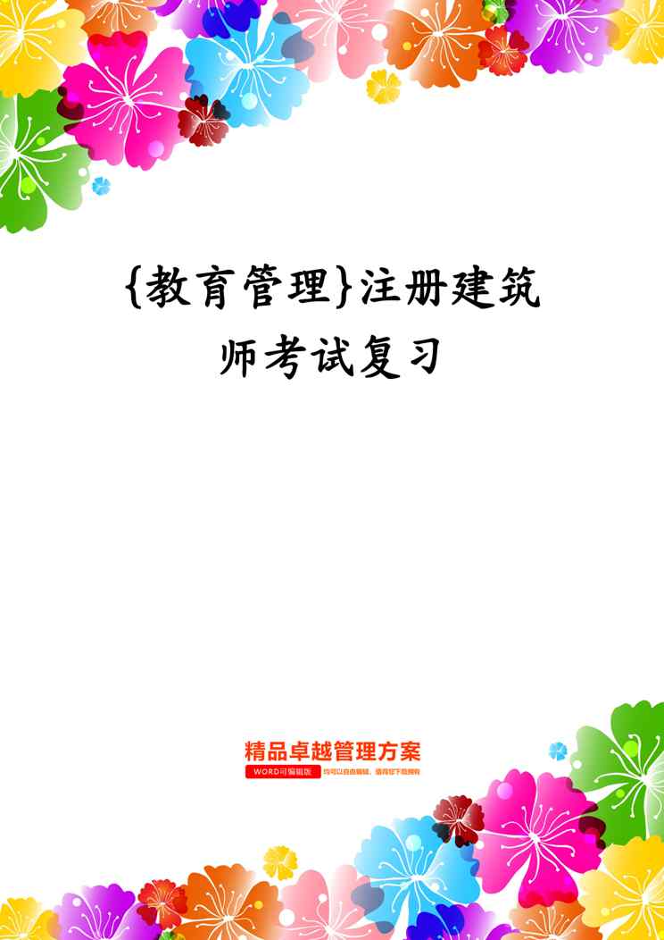 本站正式发布了《{教育管理}注册建筑师考试复习》文档,文档详细内容可下载阅读。 声明:本站所有文章,如无特殊说明或标注,均为本站原创发布。任何个人或组织,在未征得本站同意时,禁止复制、盗用、采集、发布本站内容到任何网站、书籍等各类媒体平台。如若本站内容侵犯了原著者的合法权益,可联系我们进行处理。