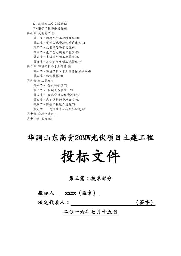 不久前,最新文档《{标书投标}光伏项目土建工程投标文件》全文正式在本站发布,感兴趣的用户可以下载阅读。 声明:本站所有文章,如无特殊说明或标注,均为本站原创发布。任何个人或组织,在未征得本站同意时,禁止复制、盗用、采集、发布本站内容到任何网站、书籍等各类媒体平台。如若本站内容侵犯了原著者的合法权益,可联系我们进行处理。