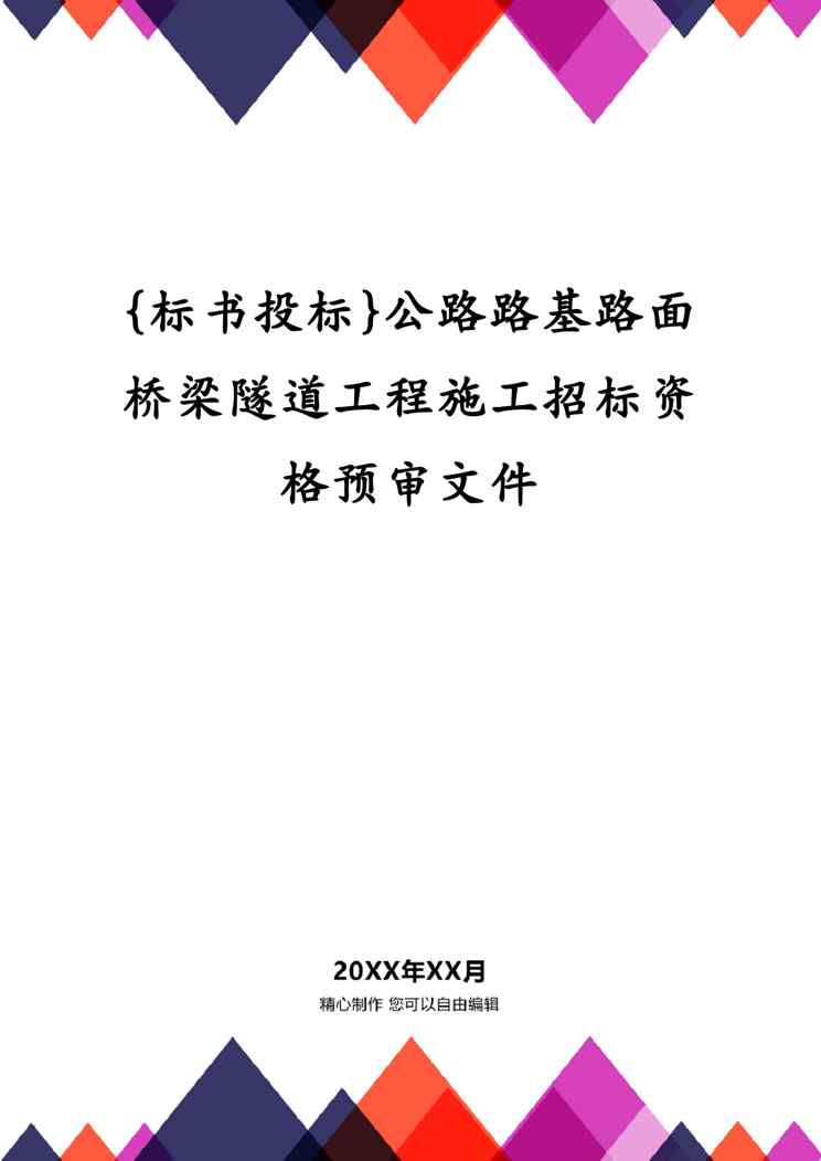 本站正式发布了《{标书投标}公路路基路面桥梁隧道工程施工招标资格预审文件》文档,文档详细内容可下载阅读。 声明:本站所有文章,如无特殊说明或标注,均为本站原创发布。任何个人或组织,在未征得本站同意时,禁止复制、盗用、采集、发布本站内容到任何网站、书籍等各类媒体平台。如若本站内容侵犯了原著者的合法权益,可联系我们进行处理。