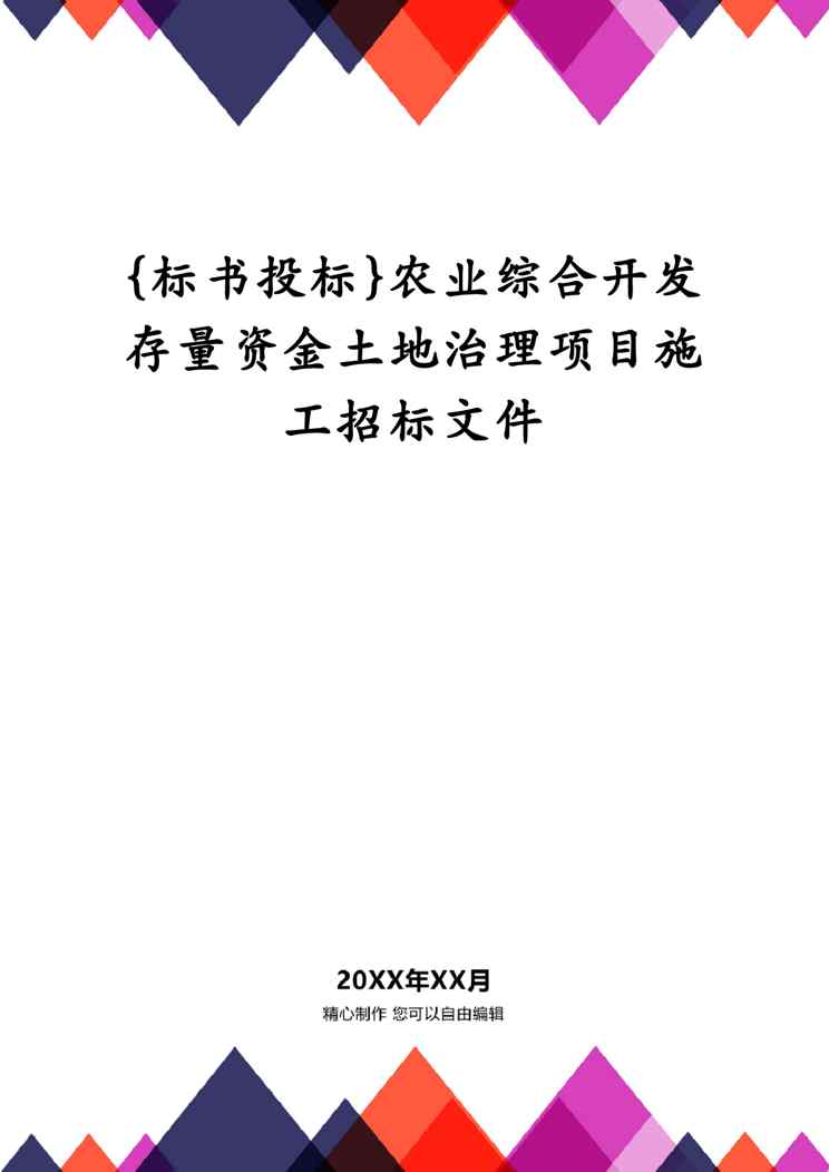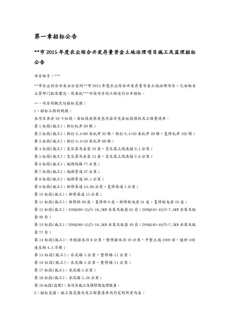 本站资深用户发布了最新的《{标书投标}农业综合开发存量资金土地治理项目施工招标文件》文档,以下内容为预览,详细内容可下载阅读。 声明:本站所有文章,如无特殊说明或标注,均为本站原创发布。任何个人或组织,在未征得本站同意时,禁止复制、盗用、采集、发布本站内容到任何网站、书籍等各类媒体平台。如若本站内容侵犯了原著者的合法权益,可联系我们进行处理。