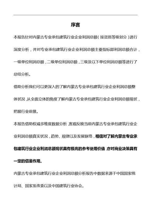 本站正式发布了《2018版内蒙古专业承包建筑行业企业利润总额(按资质等级划分)分析报告》文档,文档详细内容可下载阅读。 声明:本站所有文章,如无特殊说明或标注,均为本站原创发布。任何个人或组织,在未征得本站同意时,禁止复制、盗用、采集、发布本站内容到任何网站、书籍等各类媒体平台。如若本站内容侵犯了原著者的合法权益,可联系我们进行处理。