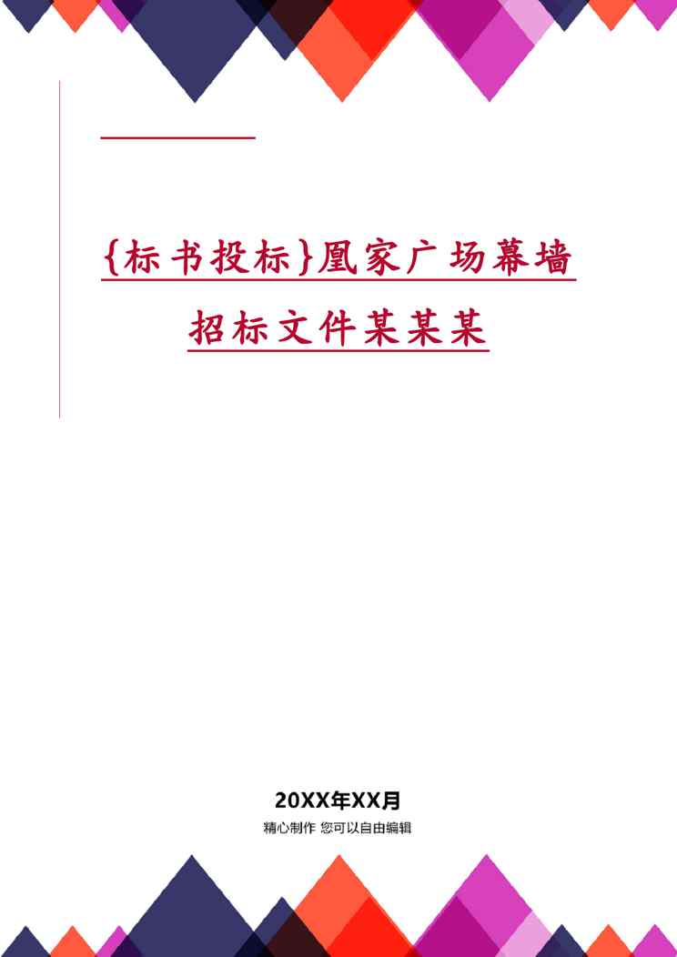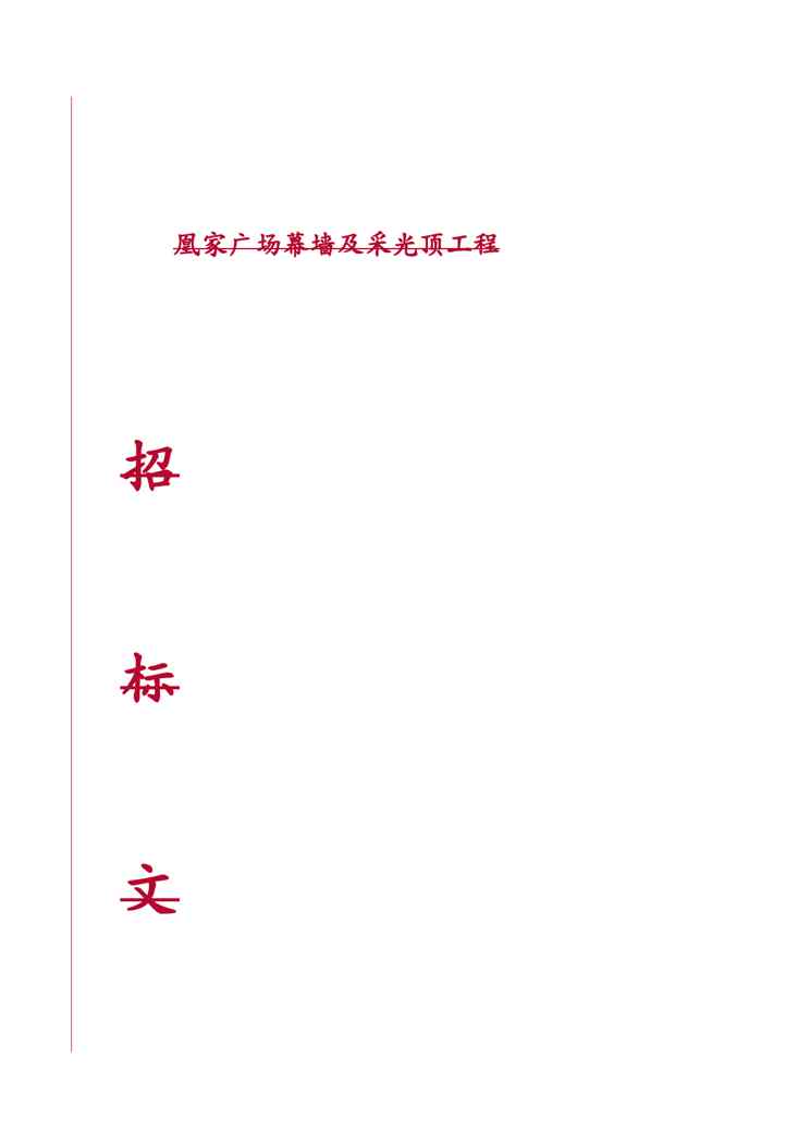本站资深用户发布了最新的《{标书投标}凰家广场幕墙招标文件某某某》文档,以下内容为预览,详细内容可下载阅读。 声明:本站所有文章,如无特殊说明或标注,均为本站原创发布。任何个人或组织,在未征得本站同意时,禁止复制、盗用、采集、发布本站内容到任何网站、书籍等各类媒体平台。如若本站内容侵犯了原著者的合法权益,可联系我们进行处理。