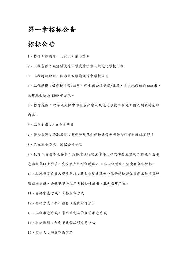 本站资深用户发布了最新的《{标书投标}双滘镇大陈中学灾后扩建及规范化学校工程施工招标文件》文档,以下内容为预览,详细内容可下载阅读。 声明:本站所有文章,如无特殊说明或标注,均为本站原创发布。任何个人或组织,在未征得本站同意时,禁止复制、盗用、采集、发布本站内容到任何网站、书籍等各类媒体平台。如若本站内容侵犯了原著者的合法权益,可联系我们进行处理。