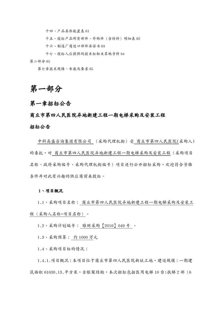 不久前,最新文档《{标书投标}商丘市四人民医院异地新建工程期电梯采购及安装工程招标文件》全文正式在本站发布,感兴趣的用户可以下载阅读。 声明:本站所有文章,如无特殊说明或标注,均为本站原创发布。任何个人或组织,在未征得本站同意时,禁止复制、盗用、采集、发布本站内容到任何网站、书籍等各类媒体平台。如若本站内容侵犯了原著者的合法权益,可联系我们进行处理。