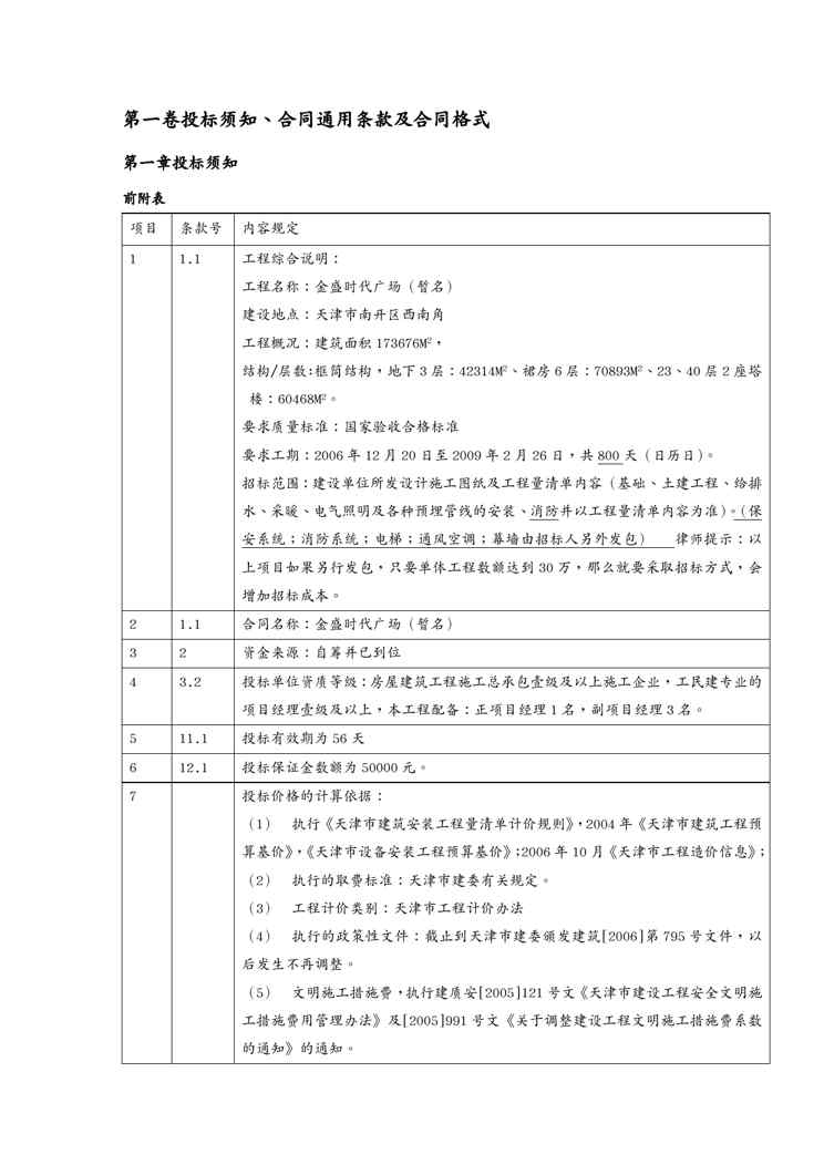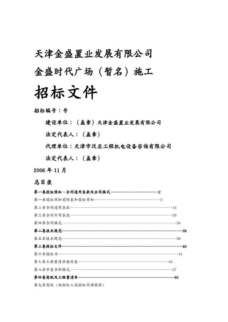 不久前,最新文档《{标书投标}天津金盛时代广场施工招标文件》全文正式在本站发布,感兴趣的用户可以下载阅读。 声明:本站所有文章,如无特殊说明或标注,均为本站原创发布。任何个人或组织,在未征得本站同意时,禁止复制、盗用、采集、发布本站内容到任何网站、书籍等各类媒体平台。如若本站内容侵犯了原著者的合法权益,可联系我们进行处理。