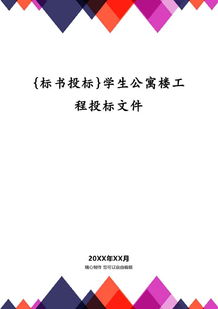 本站资深用户发布了最新的《{标书投标}学生公寓楼工程投标文件》文档,以下内容为预览,详细内容可下载阅读。 声明:本站所有文章,如无特殊说明或标注,均为本站原创发布。任何个人或组织,在未征得本站同意时,禁止复制、盗用、采集、发布本站内容到任何网站、书籍等各类媒体平台。如若本站内容侵犯了原著者的合法权益,可联系我们进行处理。