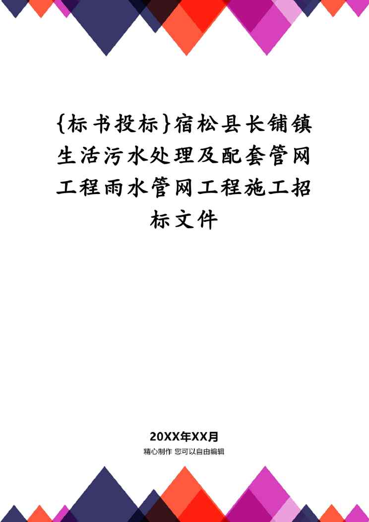 不久前,最新文档《{标书投标}宿松县长铺镇生活污水处理及配套管网工程雨水管网工程施工招标文件》全文正式在本站发布,感兴趣的用户可以下载阅读。