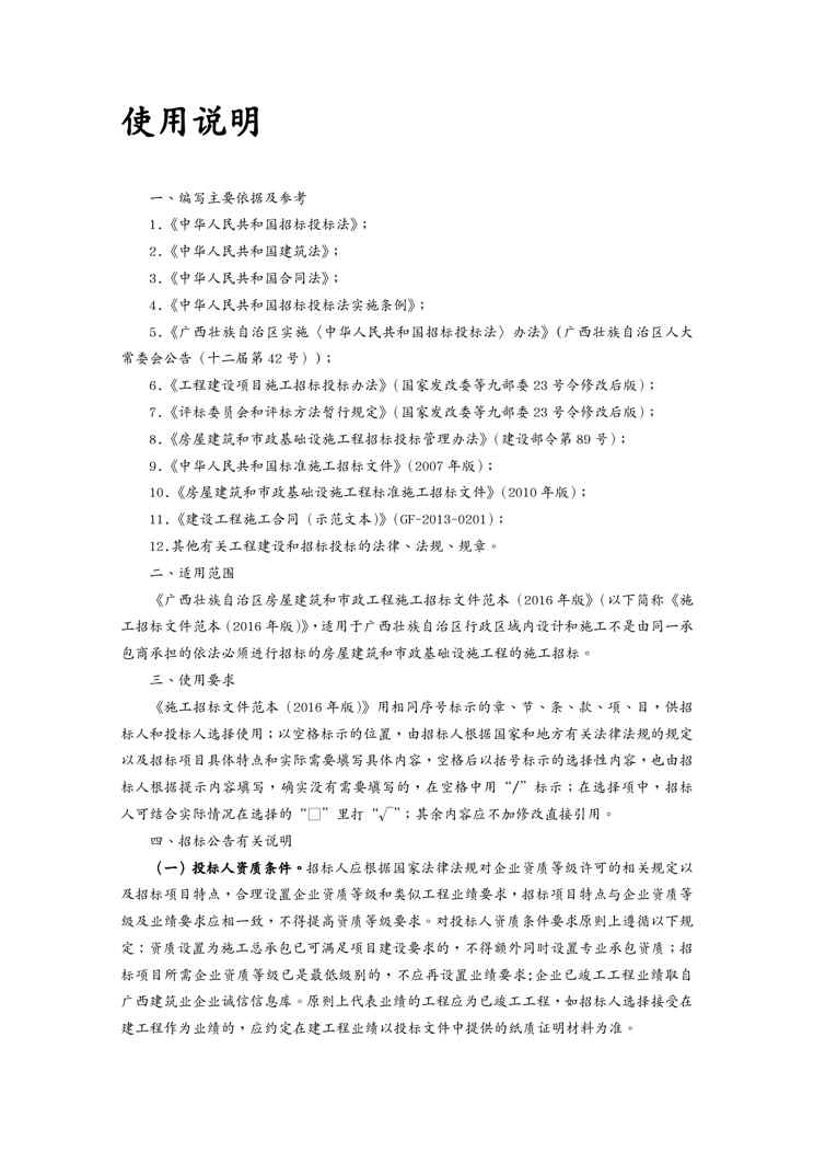 本站资深用户发布了最新的《{标书投标}广西壮族自治区房屋建筑和市政工程施工招标文件范本》文档,以下内容为预览,详细内容可下载阅读。 声明:本站所有文章,如无特殊说明或标注,均为本站原创发布。任何个人或组织,在未征得本站同意时,禁止复制、盗用、采集、发布本站内容到任何网站、书籍等各类媒体平台。如若本站内容侵犯了原著者的合法权益,可联系我们进行处理。