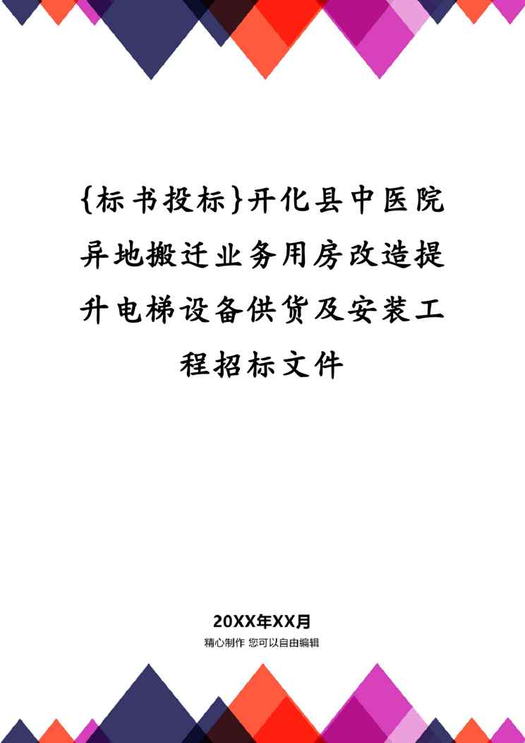 本站资深用户发布了最新的《{标书投标}开化县中医院异地搬迁业务用房改造提升电梯设备供货及安装工程招标文件》文档,以下内容为预览,详细内容可下载阅读。 声明:本站所有文章,如无特殊说明或标注,均为本站原创发布。任何个人或组织,在未征得本站同意时,禁止复制、盗用、采集、发布本站内容到任何网站、书籍等各类媒体平台。如若本站内容侵犯了原著者的合法权益,可联系我们进行处理。