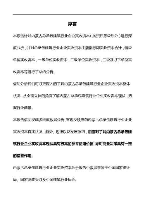 不久前,最新文档《2018版内蒙古总承包建筑行业企业实收资本(按资质等级划分)分析报告》全文正式在本站发布,感兴趣的用户可以下载阅读。 声明:本站所有文章,如无特殊说明或标注,均为本站原创发布。任何个人或组织,在未征得本站同意时,禁止复制、盗用、采集、发布本站内容到任何网站、书籍等各类媒体平台。如若本站内容侵犯了原著者的合法权益,可联系我们进行处理。