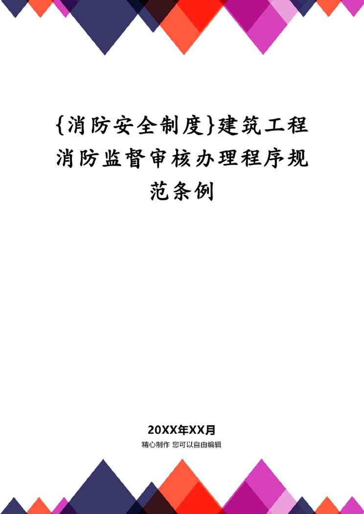 本站正式发布了《{消防安全制度}建筑工程消防监督审核办理程序规范条例》文档,文档详细内容可下载阅读。 声明:本站所有文章,如无特殊说明或标注,均为本站原创发布。任何个人或组织,在未征得本站同意时,禁止复制、盗用、采集、发布本站内容到任何网站、书籍等各类媒体平台。如若本站内容侵犯了原著者的合法权益,可联系我们进行处理。