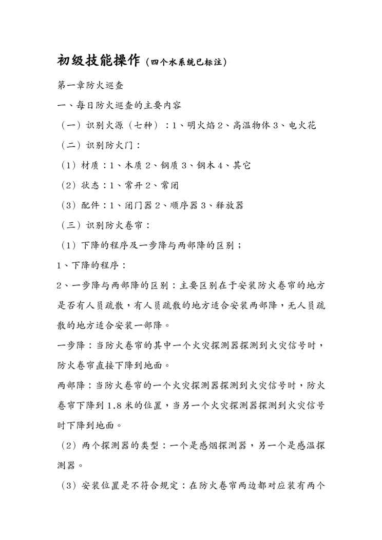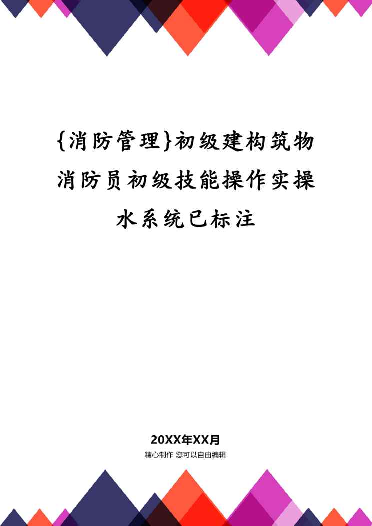 本站资深用户发布了最新的《{消防管理}初级建构筑物消防员初级技能操作实操水系统已标注》文档,以下内容为预览,详细内容可下载阅读。 声明:本站所有文章,如无特殊说明或标注,均为本站原创发布。任何个人或组织,在未征得本站同意时,禁止复制、盗用、采集、发布本站内容到任何网站、书籍等各类媒体平台。如若本站内容侵犯了原著者的合法权益,可联系我们进行处理。