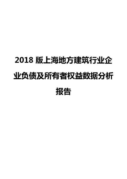本站资深用户发布了最新的《2018版上海地方建筑行业企业负债及所有者权益数据分析报告》文档,以下内容为预览,详细内容可下载阅读。 声明:本站所有文章,如无特殊说明或标注,均为本站原创发布。任何个人或组织,在未征得本站同意时,禁止复制、盗用、采集、发布本站内容到任何网站、书籍等各类媒体平台。如若本站内容侵犯了原著者的合法权益,可联系我们进行处理。