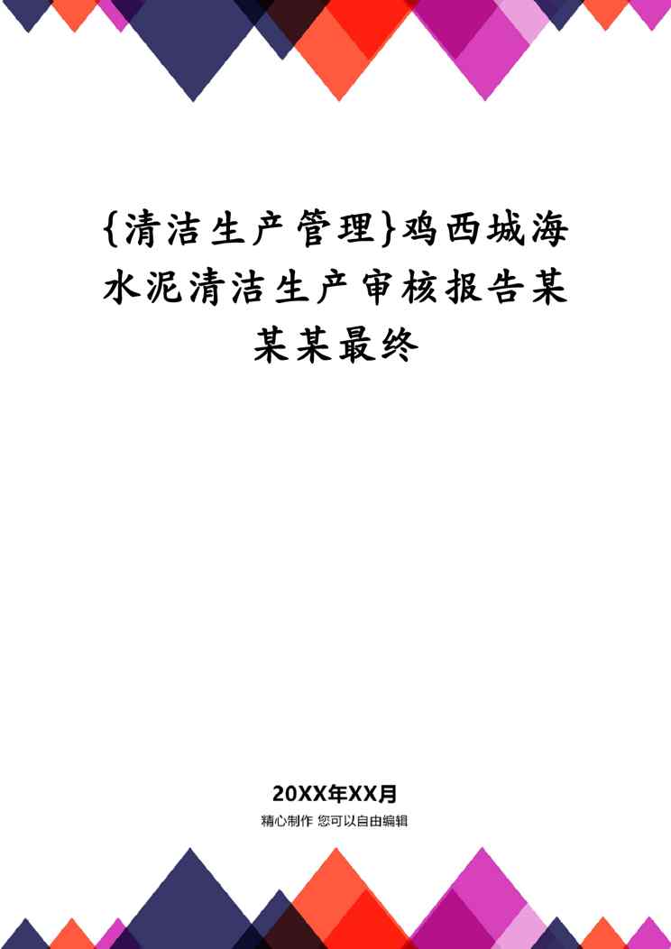 {清洁生产管理}鸡西城海水泥清洁生产审核报告某某某最终{清洁生产管理}鸡西城海水泥清洁生产审核报告某某某最终{清洁生产管理}鸡西城海水泥清洁生产审核报告某某某最终{清洁生产管理}鸡西城海水泥清洁生产审核报告某某某最终{清洁生产管理}鸡西城海水泥清洁生产审核报告某某某最终