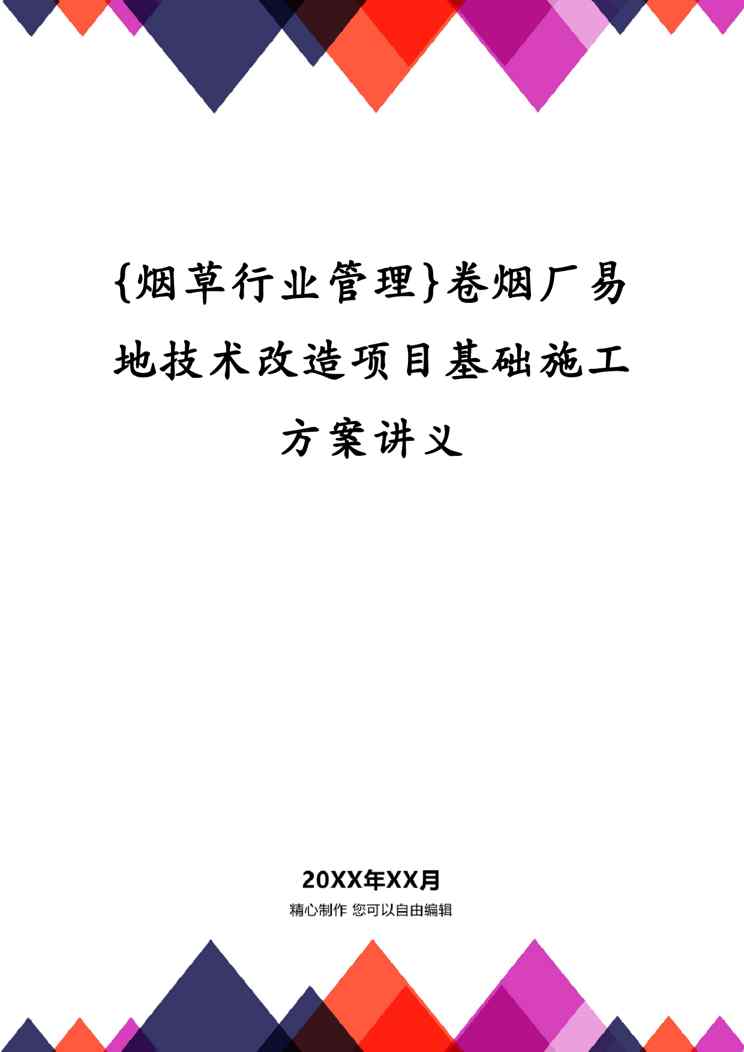 本站资深用户发布了最新的《{烟草行业管理}卷烟厂易地技术改造项目基础施工方案讲义》文档,以下内容为预览,详细内容可下载阅读。 声明:本站所有文章,如无特殊说明或标注,均为本站原创发布。任何个人或组织,在未征得本站同意时,禁止复制、盗用、采集、发布本站内容到任何网站、书籍等各类媒体平台。如若本站内容侵犯了原著者的合法权益,可联系我们进行处理。