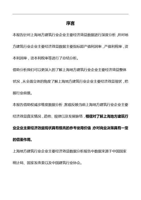 本站资深用户发布了最新的《2018版上海地方建筑行业企业主要经济效益数据分析报告》文档,以下内容为预览,详细内容可下载阅读。 声明:本站所有文章,如无特殊说明或标注,均为本站原创发布。任何个人或组织,在未征得本站同意时,禁止复制、盗用、采集、发布本站内容到任何网站、书籍等各类媒体平台。如若本站内容侵犯了原著者的合法权益,可联系我们进行处理。